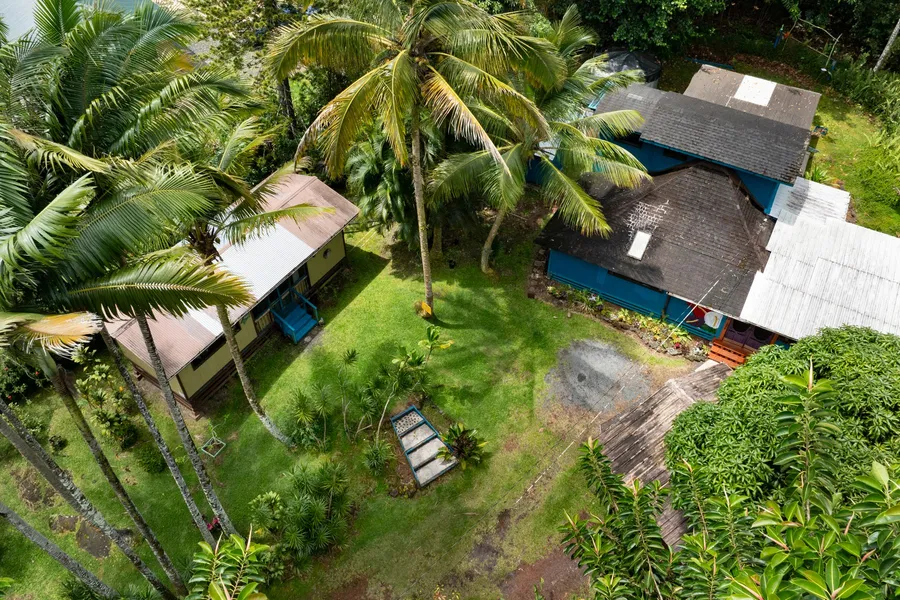 On the fully fenced property you will find raised planter beds, baby avocado trees, mango trees, coconuts, papaya, cacao, meyers lemons, orange, lilikoi, pineapples, lemon grass, jaboticoba, clove, monkeypod, heliconia, golden timber bamboo, hibiscus, orchids, miracle berrie, 3 types of gardenia and more.