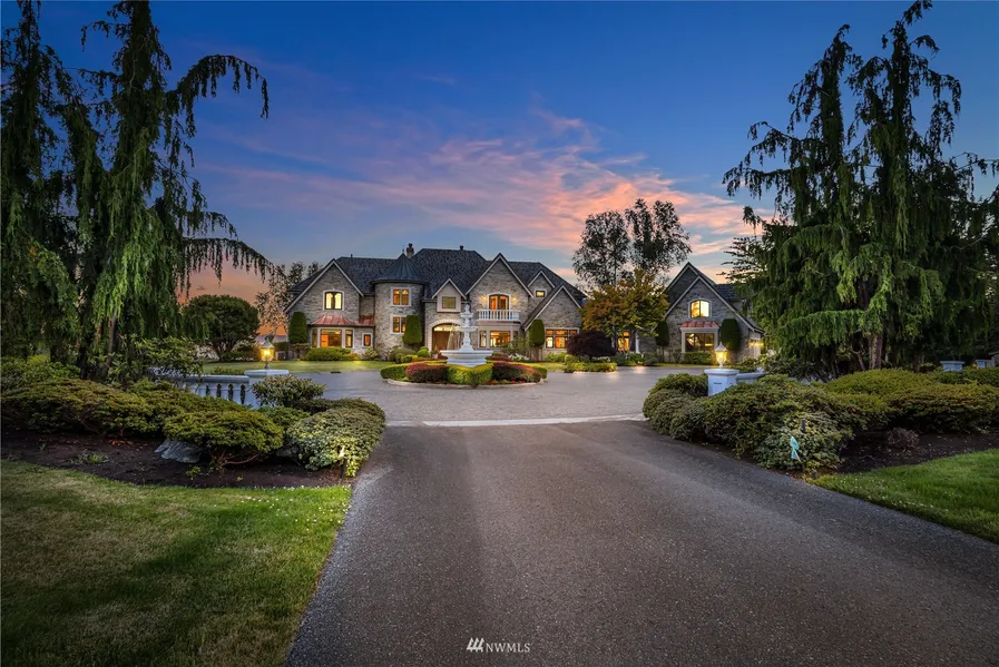 Emanating Old World charm and romanticism on a grand scale, this luxurious over 15-acre gated waterfront estate offers commanding views of the strait, bay, islands, and mountains, and provides private access to 400+ feet of beach. From the spacious motor court, sprawling lawns and impeccable landscaping, to the home's stately entry doors, soaring vaulted ceilings, regal staircase, profusion of fine wood, and multiple fireplaces, this is an abode worthy of the most discerning owners and guests. Chef's kitchen, office, theatre, wine cellar, pub and game room, gym and sauna. Expansive rear terrace and dining veranda. Owners' retreats feature fireplaces, luxury baths, and French doors to view balconies. Private and secluded, yet convenient.