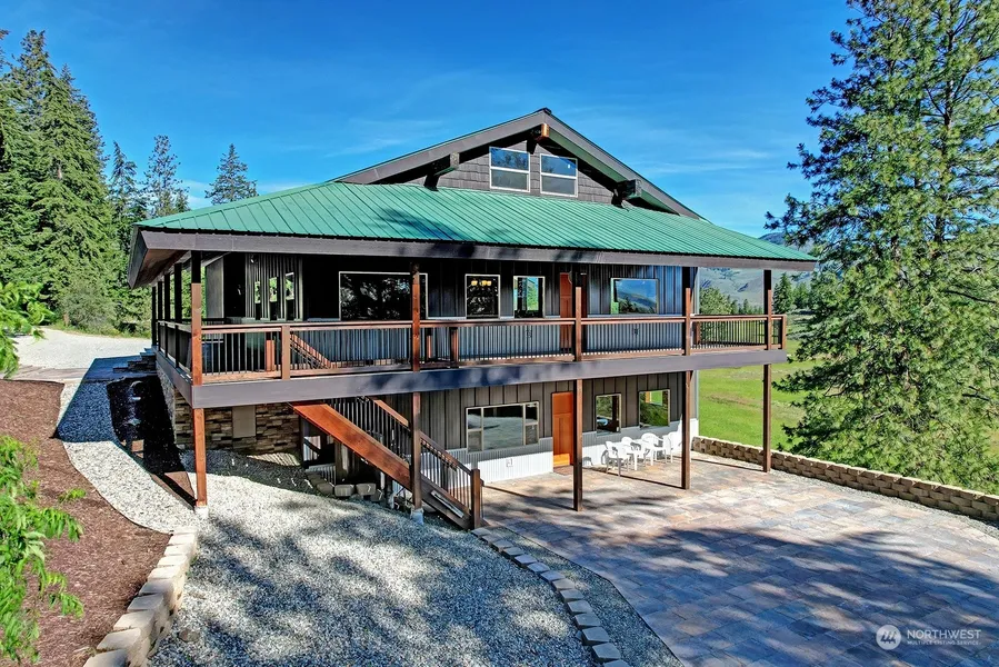 Beautiful custom home tucked away in the upper hills above Wolf Creek. Sited with gorgeous views of the Mazama corridor and northern peaks, sprawling meadows, rich wildlife, a rare setting and private place close to ski trails and mountain adventure. The seller's family purchased this land directly from the Thompson Homestead Family more than 50 years ago. Extraordinary lodge style residence built with attention to detail and fire safety materials. Top quality construction using ICF block with high insulation. Lower level has a complete second kitchen and ground floor living spaces. Beautiful, covered decks, open patio and fire pit. 2866 SF garage/shop. Powerful wired diesel generator. Location close to town and all amenities.