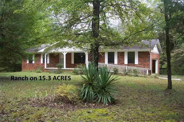 Total brick ranch with full basement on 15.3 acres and small creek. The Home has 3 bedrooms,1.5 baths ,two car garage, wood burning fireplace in living room, wood stove in basement.Supra on front door