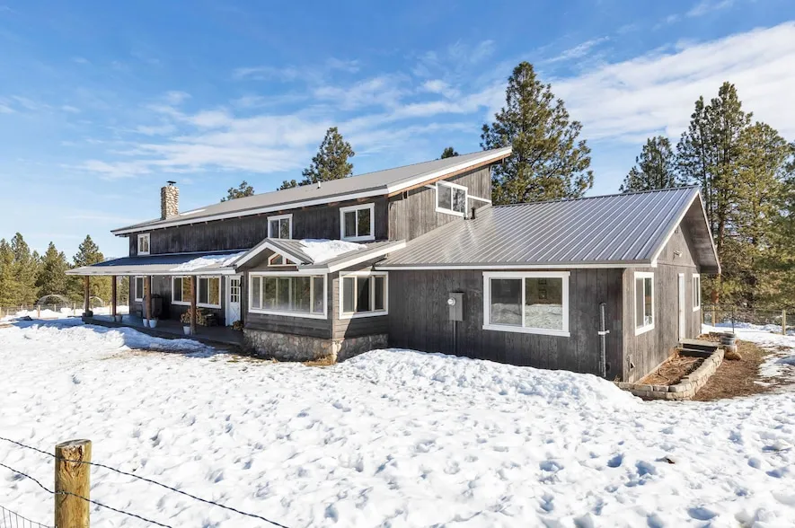 Nestled in privacy yet minutes from town, this 3 bedroom, 3 bathroom home offers stunning views of the Bitterroot Mountains on 15.35 acres. Features include a grand rock fireplace, vaulted ceilings, remodeled kitchen with quartz countertops, and a cozy family room with a pellet stove. The primary suite has an ensuite bath with a tiled shower and clawfoot tub. Outside, find fruit trees, a barn, and multiple pens all ready for your farm animals. The property is fully livestock-ready, featuring a corral, hay storage, and both water and power to the pens. Recent upgrades include a brand new 50 year metal roof and new windows throughout. A 40'x30' attached garage/shop provides ample storage. Not only is this property a peaceful haven, but it's also conveniently located: less than 2 miles from the filming location of Yellowstone and just 40 minutes from the Lost Trail Ski Area, perfect for winter fun.