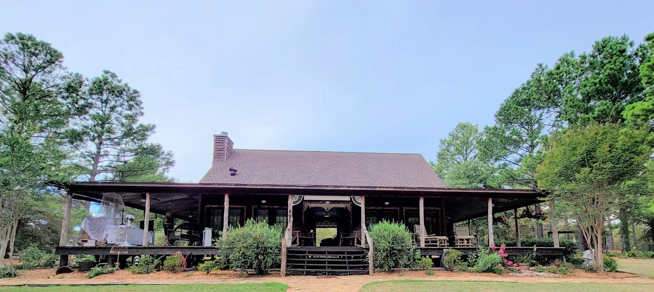 This 15 acres with is truly one-of-a-kind. Surrounded by tall east Texas trees along with a landscaped lawn. Property boasts approx. 15 acres that include numerous picturesque outdoor spaces which can serve asattractive entertaining areas or comfortable outdoor living spaces for a family. Home is built using milled cedar & surroundedby a wrap-around porch with six sets of French doors that open to allow for a breeze. Interior dog run entails barn doorsproviding access to the front & back areas as well as the loft that overlooks one side of the home. Right side of homecomplete with kitchen, dining area, living area, & full bath. Kitchen includes restored Chambers stove from 1952, refrigerator,microwave, hidden single-unit dishwasher, & extended copper sink. Bath is complemented with subway tile covering all walls& floors, exterior access from porch, as well as wheelchair accessibility. Left side of home is complete with bedroom withwood-burning fireplace, bathroom with timeless cast-iron clawfoot tub all meticulously designed around beautiful ship-lap and beadboard. Laundry room located off of bathroom. Outdoors you will find gorgeous views from every angle. Possibilities areendless with the rare setups found surrounding this home. Conversation pavilion with metal roof has a lit dining areaadjacent. Lighted bar area near outdoor firepit with fabulous chandelier is perfect for entertaining guests. Charming gardengazebo setup with benches for gatherings would make an ideal spot for weddings or church services. Call today for a privatetour of this stunning East Texas property! Property is being sold with all furnishing and decorations (excluding kitchen spicerack, Terracotta soldier, & small round BBQ).