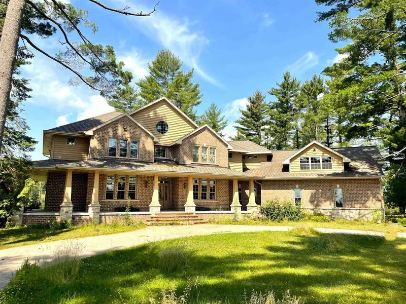 Northwoods Retreat “ 15ac w/pond is the setting for this executive brick/cedar home w/maple woodwork throughout. Stunning backyard view of the woods & pond w/abundant wildlife from the soaring 22-foot window wall. When you enter the front door stunning double staircase w/railed balcony & view of the window wall will have you in awe! High-end cabinetry, granite counters, quality appliances including a built-in drawer microwave, double dishwasher, double drawer extra fridges, built in Bosch coffee machine, 2-built in ovens (1 is a french door oven), 5 star 6 burner stove w/griddle, 2 copper sinks, walk-in pantry, bkfst nook, island w/seating. Formal dining & living room share a double-sided FP. Listed with 85 ac -$749K MLS#50277663