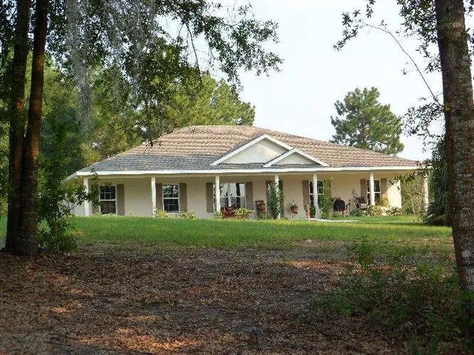 All new facilities built in 2009 - on quiet country road not far from town - Nestled among other horse farms - just down from Live Oak Plantation - Home has bright open floor plan - tiled floors - high ceilings, great room with fireplace, split bedroom plan - large game room could be converted to 3rd bedroom and den - formal and informal dining - porch across entire front of home with view of riding arena - back porch - riding arena is 110 x 220 - Nice airy center aisle barn with 8 stalls - separate tack and feed room - wash rack - and additional 4 stall center aisle barn - two large paddocks with shade trees - electric gated entrance - 30 and 50 amps motor home hook-ups - riding or driving horse trails right around corner - no traffic - peaceful and quiet