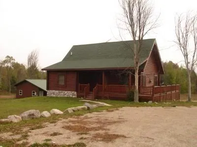 Beautiful log home, stone fireplace and 20+ ft. ceilings in living room, 3 bedrooms 2 baths, partially finished full basement, sits on 15 acres with large pond to enjoy the wild life. Also a 3+ car detached garage.