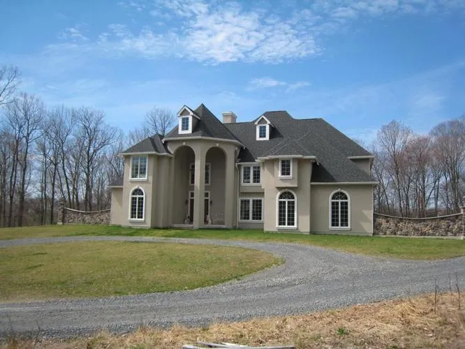 SPECTACULAR SETTING! 15 ACRES, PAVED PRIVATE RD. OVER BRIDGE. GRAND KITCHEN, SOARING CEILING IN LIVING ROOM WITH FLOOR TO CEILING WINDOWS. LARGE 1ST FLR MBR. A MUST SEE!!