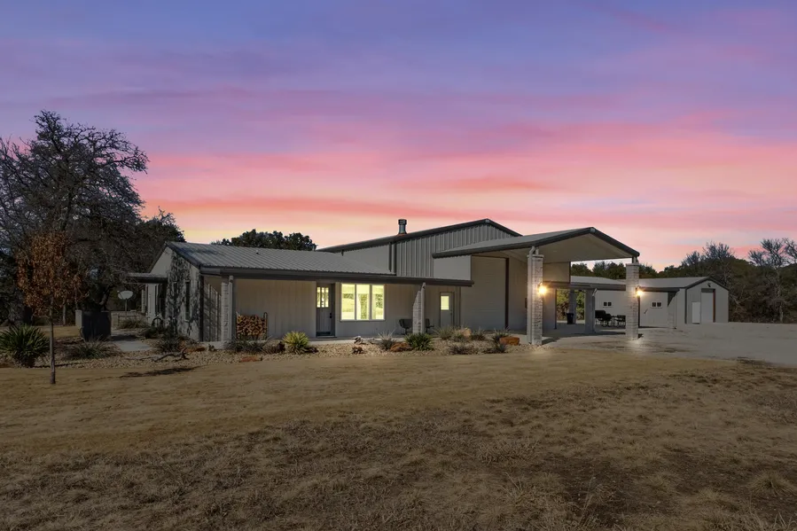 This 150 +/- acres has everything anyone could want in a ranch.elevation, surface water, oaks, hunting, views, both sides of Blanket Creek, and heavy cover. The ranch is accessed off a county road and has an electric gate. The road winds down to the awesome barndominium tucked in live oaks. The living area has 3 bedrooms, 2 bathrooms, kitchen, dining, living room, and mud/laundry room. Inside the living area the floors are wood plank with tile in the bathrooms. Cabinets tops are granite and the cabinets are custom built. The kitchen has a coffee bar and large island..the kitchen along with living and dining areas are open concept with plenty of windows to allow for natural light. Two of the bedrooms have custom built full size bunk beds.one has 4 beds and the other has 2. In the living room a rock fireplace is the focal point of the room.