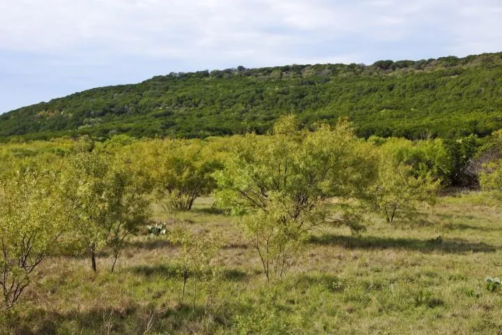 slopes and hills the cedar is dominate with some elm. Medium to heavy limestone outcroppings on the slopes and hills. The native grass turf is excellent with no signs of over grazing. Incredible views from on top of the hill with 350 feet of elevation change and on the edge of the Palo Pinto Mountains.