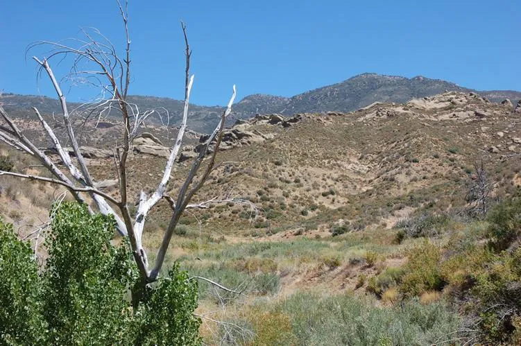 DESCRIPTION: This land sits about 25 miles north of the city of Ojai on Highway 33. Running through it is the year-round Sespe Creek, which has trout. The property is surrounded by the National Forest, and includes two cabins and a mobile home. Pine trees dot the hills surrounding the creek.