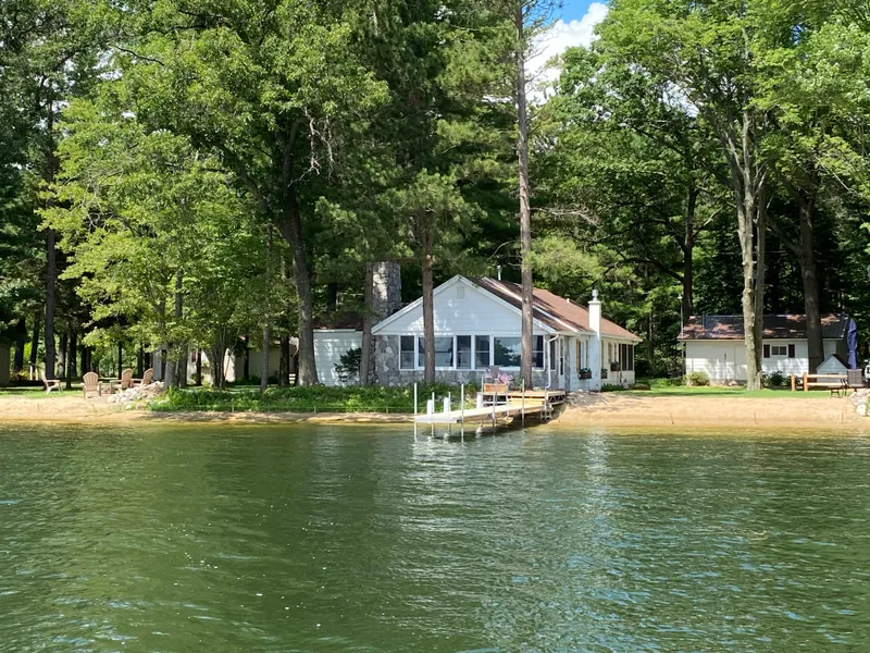 Waterfront ranch home on beautiful Eight Point Lake. Special property on the north shore, 150ft continual walk out sandy beach. 3 bed, 2 bath completely updated interior. New electrical, flooring, kitchen (custom Amish cabinets) appliances, bathroom. New shingle roof 2025. Willing to sell fully furnished, move-in ready. Gas fireplace. 2 car detached garage. New central air and furnace 2020 for year round usage. Dock included. Huge lot and yard, garden area, storage. Private drive at dead-end paved road.