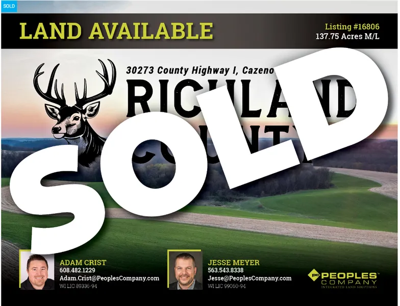 Peoples Company is pleased to present this exceptional opportunity to purchase a secluded piece of paradise on the ridgetops of Richland County, Wisconsin! This 137.75 acre, one-of-a-kind property has everything you could ever want to enjoy a private family or friend weekend getaway, yet also provides income-producing farmland to justify it!