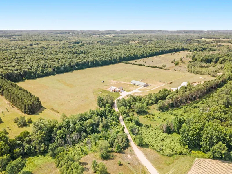 Everything needed in Michigan is located in Manistee County at this sprawling 151 +/- acre, Kaleva custom country estate, with 3, 462' of private water frontage on Bear Creek. Begin your days fishing this cold-water stream that supports self-sustaining populations of brown and brook trout, in addition to migratory steelhead, Coho Salmon, and Chinook Salmon. The land also offers a diverse, whitetail habitat, giving any sportsmen invigorating fall hunts in the woods. Then come inside and enjoy more views in front of big windows and a fireplace. The home construction includes energy efficient upgrades. The exterior utilizes Structural Insulated Panels and a copper roof, with the southward side of the home showcasing a Passive Solar Design. An unfinished apartment over the garage could also be a Mother-in-Law suite/income property. So much to do here! The attention to detail can be noticed from the 9' ceilings down to the floor materials, whereas the basement and breezeway even includes in-floor radiant heat. The exterior utilizes Structural Insulated Panels and a copper roof, with the southward side of the home showcasing a Passive Solar Design, to name a few. An unfinished apartment over the garage could also be a Mother-in-Law suite or income property. The home boasts a 7200 sq. ft. pole barn for equestrian and workshop use and has room for boat storage or snowmobile storage for nearby winter trail riding. Other activities in the area include but are not limited to: Lake Michigan, Tippy Dam, Crystal Mountain, Caberfae, Sleeping Bear Dunes, and a short commute to wineries and Traverse City. There is so much to do here! But, if you would rather just wind down on your private deck, off the master suite, and overlook the grounds as the sun goes down, then you can do that too. *If you are reading this ad on Zillow, please scroll down and contact our firm directly to schedule a showing. Please note, maps contained on our sites are there to depict the overall layout of a given property from an aerial view. These maps are neither a legally recorded map or legal survey and shouldn't be used as such. Acreage amounts are displayed as according to the information we have obtained through local government and are in no way implied, guaranteed or warranted.