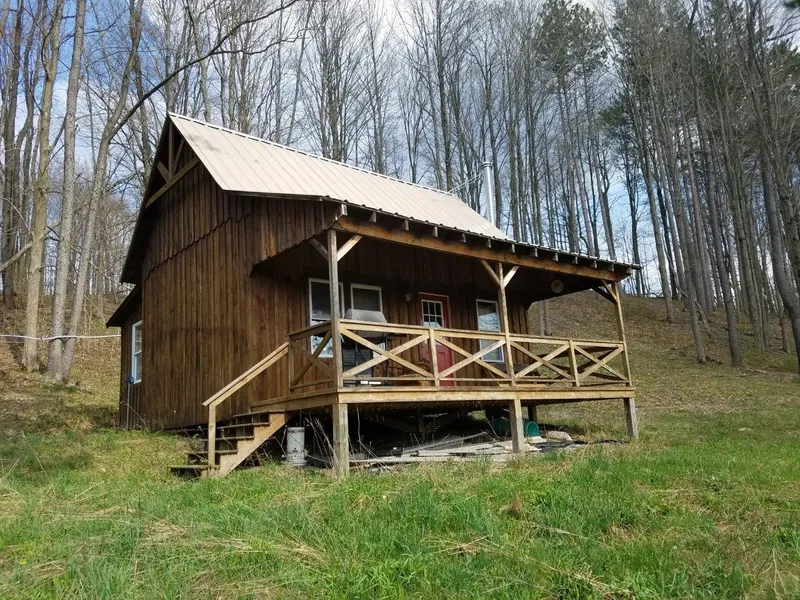 Cabin on 152+ acres near Hornell NY with a Large Steel Shed, Sugar Cabin, and Pond.