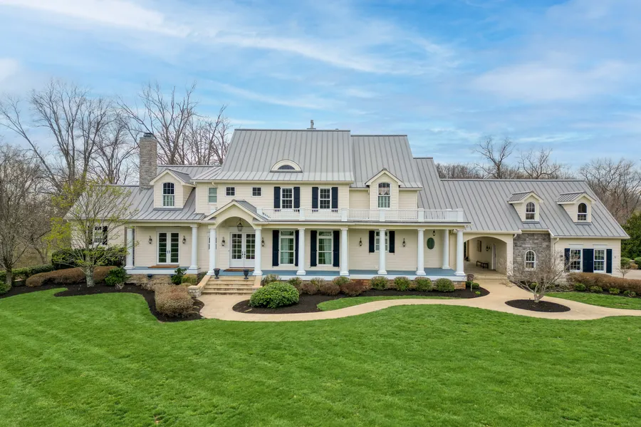 This stunning Southern-style estate combines classic charm with modern luxury, nestled on a beautifully manicured lot, located just minutes from Valhalla Golf Club. A metal roof, expansive front porch, and mature landscaping set the tone for this exceptional property. Inside, you'll find hardwood floors throughout most of the main level, a formal dining room with fireplace, a private study with built-in shelves, a spacious formal living room with windows overlooking the picturesque property, and a family room with built-ins overlooking the kitchen. The gourmet kitchen is equipped with a Sub-Zero refrigerator, oversized island with bar seating, custom cabinetry, and a breakfast area overlooking the backyard. Finishing touches like the coffered ceiling and built-in ice maker elevate this kitchen to a true culinary haven, perfect for entertaining in style. The spacious first-floor primary suite with stunning views of the pool and private rear yard, features two walk-in closets and a spa inspired luxurious ensuite bath with tile shower and a luxurious soaking tub. The second level offers three additional bedrooms, each with its own ensuite full bathroom and dedicated walk-in closet. One guest suite boasts an attached flex room, perfect for a recreation or lounge space. A versatile loft space on the second level can easily serve as a home office, reading nook, or creative studio. The remodeled walkout lower level includes a large family room with double-sided fireplace, kitchenette/bar, recreational area, home gym with sauna, and a full bathroom. Enjoy outdoor living with a heated saltwater pool, basketball court, travertine fire pit, and even a charming chicken coopall surrounded by mature landscaping and lush greenery. With easy access to Shelbyville Road and the Gene Snyder Freeway, this prime location allows the new owner to reach premier shopping, dining, and city destinations within minutes. This home is a rare opportunity to experience the finest in Louisville living.