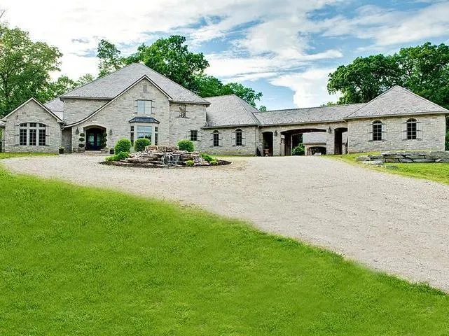 This custom built home is located on approximately 154 acres with 30 acres of tillable ground. With captivating views, wildlife mecca and a stunning private estate, you will have a sprawling palace that is truly one of a kind. Amenities include a fully stocked pond, gunite swimming pool with hot tub, pool house with full kitchen and Viking appliances, half bath and covered gathering area. A waterfall feature compliments the stone terrace that stretches the length of the home. In addition to the oversized stone garage, there is an additional guest living quarters that includes kitchenette, bath and living space. The home itself includes Brazilian cherry floors, wine cellar, granite countertops, copper sink, Wolf appliances multiple stone fireplaces and pillars which have been hand chiseled to fit, beamed ceilings, hand crafted cabinetry, built-in vault, custom crown molding and geo thermal heating and cooling system.