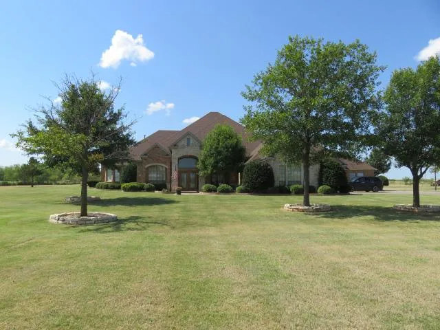 Astonishing 4 bedroom 3 1/2 bath executive home is just minutes to Wichita Falls. Home is on 5.76 acres of immaculately manicured grounds. It is at 15421 FM 1954. The property is gated with a long driveway all the way back to the shop. There are stone borders around the many oak trees in front. The long driveway goes to the 3 car side entry garage. The entry has tall ceilings with double crown molding and hardwood flooring. The formal dining is to the right of the entry. The office is to the left. The office has a wall of built in desk and cabinets. There is also a closet. Most all of the rooms in this home have crown molding and recessed lights. The spacious entry opens into the massive living, kitchen and breakfast area. These rooms are all open and it makes quite an impact! The back wall is nearly all windows which overlooks the patio and pool area. The living room has a gorgeous stone fireplace which is double sided to the family room. The Colossal kitchen has it all! There is a long breakfast bar which seats 6 very comfortably. The island has a sink. The built in appliances include a smooth cook top with vent-a-hood, double ovens, microwave and a custom sub-zero refrigerator. There is a pantry in the corner. This kitchen is every cooks dream! There is a large breakfast area. The family room is huge and has the double sided fireplace built in and an enormous storage closet perfect for games and toys. The isolated master suite has its own fireplace and shelves. The wall of windows provides natural lighting. Incredible master bath has double sinks, Jacuzzi tub and separate shower, 2 walk in closets, one of them is reinforced to act as a safe room. It has electrical outlets inside the closet. There is also a workout room on this wing of the house. There are French doors to the patio area, 2 walls of windows and a wall of mirrors on the interior wall. The other bedrooms are at the opposite end of the home. The 2nd bedroom has a walk-in closet with built ins. The bathroom door is right across the hall. It has a tub/shower and a marble sink and vanity. There is also access to the 4th bedroom which has a walk in closet with built ins and French doors to the patio. The guest bedroom has its own bath which has a tub/shower. The backyard is unbelievable! There is a gigantic covered patio. It and the pool area have stamped concrete. There is a television hookup here. You are steps away from the large gunnite swimming pool which has a layout area, diving board and an automatic cover. You can cover the pool with a push of a button! The pool equipment is housed in a brick building. The other half of this brick building is a full bath that serves the pool area. The back pasture is also manicured. There is a 45x30 metal shop building on a slab which has a walk through door, a drive through door and a 12 RV drive through door. Security cameras let you see who is coming up your drive. This is an impeccable property! Holliday schools. 4533 square feet per owner. You will not be disappointed by this one! For more information or to schedule a showing call The Sandra Wortham Team at 940-733-6080 or940-264-4663. Recorded information 1-800-713-5904 Enter 1270.