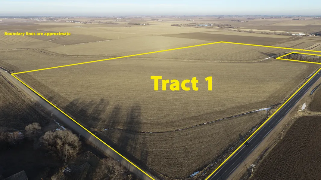 Location: From Sioux Feed on the South Edge of Sioux Center, IA go 3 miles South on HWY 75 to HWY 10 then go 1 Mile West on HWY 10 to Tract 1. Tract 2 lies directly North of Tract 1.