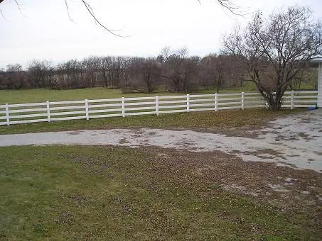 Home is brick with a new metal roof. Farm is setoff by a white vinyl fence. Small creek runs through the south part of the