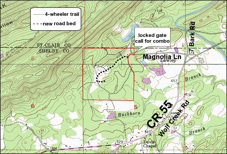 Research Parcel InformationFrom US Highway 280 and County Road 55 in Westover, proceed north on County Road 55 for 7.3 miles to AL Hwy 25 in Sterrett. Turn left on Hwy 25 and go mile to where County Road 55 continues north and take a right on County Road 55. Go 3.5 miles to the intersection of County Road 43 on the left and bear right to stay on County Road 55. Go another 1.2 miles to the intersection of Beverly Lane on the left. Take a left and go 0.6 miles to the property entrance on the left. Look for the Cyprus Partners sign. Gate is locked. Call for gate lock combo. Be sure to re lock EXACTLY like you found it.