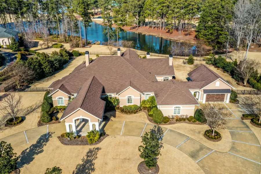 This one-of-a-kind custom estate by renowned architect Jeff Stroud at 155 Old Camp Rd., Elgin, SC 29045, is a masterpiece of design and luxury in Woodcreek Farms. Built in 2015, the home features a freshly repainted exterior, new AC units, climate-controlled garages, and an outdoor veranda with tongue-and-groove mahogany ceilings. The grand entry showcases a $32,000 Italian chandelier, custom metal front doors, and marble flooring in the foyer and music room. Pella doors and windows throughout, vaulted ceilings, and custom cabinetry by Steve Hinson enhance the elegance throughout. The gourmet kitchen boasts custom-built cabinetry, a seamless granite island, glass cabinets with mahogany trim, Wolf appliances, a Sub-Zero wine cooler, and built-in refrigerators with backlighting. The butler’s pantry and hallway feature smoked antique glass mirrors, and handcrafted Italian lighting adorns the dining room and foyer. The primary suite includes tray ceilings, double French doors to a private veranda, and a spa bath with an oversized Jacuzzi tub, walk-in shower, custom vanities, etched mirrors, and a dressing room with built-ins for shoes, handbags, jewelry, and a safe. A second primary suite on the main level features a courtyard garden and an ADA-compliant bath with a handicap-accessible shower. The billiards room has a built-in bar, rock fireplace, custom display cases, and vaulted ceilings with mahogany beams. The theater room TV, sink, refrigerator, and two large wine coolers, while the fourth upstairs bedroom opens to a veranda overlooking the golf course and pool. The outdoor kitchen features a Wolf grill, ice maker, refrigerator, and chiseled-edge sandstone granite countertops adjacent to a heated saltwater L-shaped pool, oversized travertine decking, and spa. Situated on 1.5 acres, the estate boasts French drains, irrigation, river rock borders, and stunning views of a private pond and golf course. Additional highlights include two heated two-car garages, three indoor gas fireplaces, and an outdoor wood-burning fireplace, blending luxury, comfort, and resort-style living.