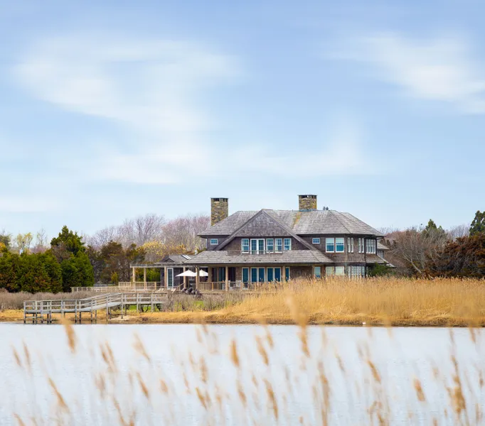 On the edge of Sagaponack Pond, nestled within undisturbed landscape overlooking the Atlantic, "Ocean View" reflects the timeless elegance of Long Island's East End architecture. Masterfully crafted by Faruk Yorgancioglu and thoughtfully designed to blend into its natural surroundings, this estate is a tranquil retreat that promises a relaxed Hampton's lifestyle in one of the most coveted areas, Sagaponack. The celebrated interior designer, Steven Gambrel, graces each room, fashioning an ambiance where nature meets luxury. A testament to tasteful modern beauty and comfort, "Ocean View" features six luxurious en suite bedrooms, including a sumptuous Jr suite with fireplace and private deck. The primary bedroom provides the ultimate retreat-like aesthetic with welcoming fireplace and sunroom. Scenic views of Sagaponack Pond and the Atlantic Ocean beyond draw you through French doors and onto the expansive private deck, where you will enjoy unparalleled western sunsets each evening. Equipped with exceptional amenities, the estate boasts a harmonious gourmet kitchen, fitted with modern culinary features, creating an epicenter for gatherings. The room extends into a serene dining space, where natural light flows from a multitude of windows, and expands into an oversized living area perfect for entertaining. Effortlessly move your gatherings to surrounding outdoor spaces from any one of these living areas. Fireplaces are well-placed throughout living environments, offering warmth and ambiance, one of which awaits al fresco diners and party guests by the immersive outdoor pool area, and another in the stylish den offering a calm retreat after a long day. Upstairs, the secluded gym stands above a two-story garage, overlooking natural habitat and featuring a full bath with steam shower - a revitalizing touch for both the fitness enthusiast and the weary soul. And the convenience of two ample laundry rooms, complete with dual washers and dryers, ensures that practicality matches the home's aesthetic appeal. The beauty of "Ocean View" extends into its symbiotic outdoor spaces. A sweeping dock beckons kayakers and paddle boarders on Sagaponack Pond, a sprawling Gunite pool invites one to cool down, and the nearby hot tub promises relaxation under the stars. Adjacent, a fully equipped pool cabana with full bath, changing rooms and sauna stands ready for those endless summer days, while 270' water views await. This is a home not just set on the land, but woven into its environment. The organic fit within the acreage overlooking Sag Pond offers unparalleled vistas from east to west, while tranquility saturates the residence. A row to the beach is mere minutes. Immerse yourself in natural splendor and indulge in the luxury of having secured one of the most sought-after homes in Sagaponack. "Ocean View" isn't simply a residence; it's an experience, a lifestyle, and a statement - and it's waiting for you.