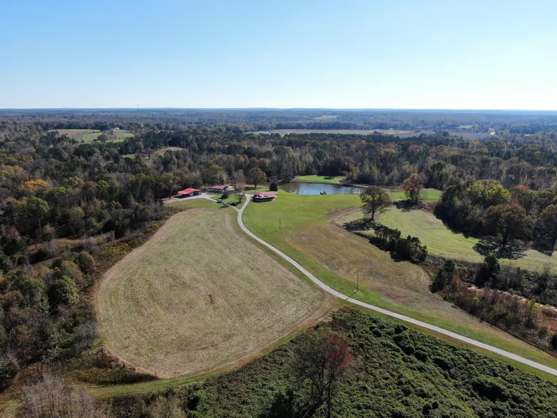 The perfect recreational and hunting getaway on a beautiful rural setting not too far from the city and convenient to Hwy. 72 in Benton County, MS. Cozy 2200 sf 3 bedroom, 2 bathroom cabin sitting on 150.75 acres of land approx.. mile off the road. Gorgeous rolling terrain with a nice mixture of open fields and beautiful timber that is a mixture hardwoods and pine. Good internal road system making the land very accessible and established food plots throughout the tract. This is the perfect hobby farm if you are looking for great hunting, fishing in one of the two ponds, a small horse farm or just simply land to play on. One of the stocked ponds is equipped with an electric well and a fishing pier. The cabin features 3 bedrooms, 2 full bathrooms, a large kitchen/great room combo with breakfast bar, mud room, and huge screened in porch wrapping around the front of the cabin overlooking the front of the property and long driveway leading into the property. Inside you will also find a nice wood burning fireplace with blowers that will easily heat the entire cabin and wet bar for perfect for entertaining guest. While on the exterior there is an attached 2 car carport, horse barn with chicken coups and lean to for parking equipment and also another equipment barn with huge storage containers and a lean to for additional storage space. Beautiful scenic mile long gravel driveway leading to the cabin off of the gated entrance on Pottery Road. The property has road nice long road frontage on Pottery road and also fronts on Jessies Road in the rear. Located convenient to Hwy. 72 and less than 1 hour from Memphis and Desoto Co.