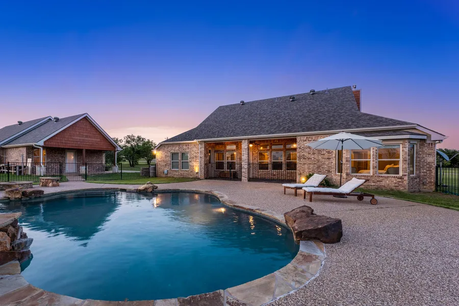 Exquisite 3402 sqft home that features 4 bedrooms, 3.5 baths and a bonus living area upstairs. You'll love this gorgeous home on 2 acres in the well-established Timber Creek Estates. Open and bright main living area with gas fireplace and built cabinets. Beautiful kitchen that features stainless steel appliances, custom painted cabinets, open shelving, subway tile, granite counters, and pantry. Main floor office study area. Great master with sitting area, his and hers closets, clawfoot tub, separate shower, and dual sinks. Property includes an adorable 1219 sqft guest house with 1 bed, 1 bath, and a large bonus room. Entertainers dream of an outdoor kitchen overlooking the pool & hot tub. Property also features a fire pit, and a large dog run. This property has so many great features! Come take a look at this one-of-a-kind property!