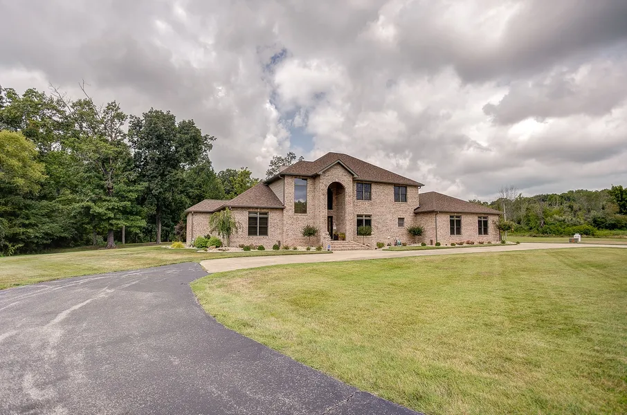 One of a kind custom built brick home on 9 acres! This 4 bed 3.5 bath home is something you have to see to believe. 1st floor master suite withshower, tub and walk in California closet! Formal dining room, living room with gas fireplace, huge kitchen with breakfast bar, double oven and custom cabinets . Upperfloor has another suite with full bath and extra large closet, two more bedrooms with bath. The basement is unfinished with roughed in bath, fireproof safe area and tonsof storage. 3 car oversized garage. Black top circle drive, back patio! New roof in May of 22. Professional landscaping, geo thermal, security system, central vac andmuch more!