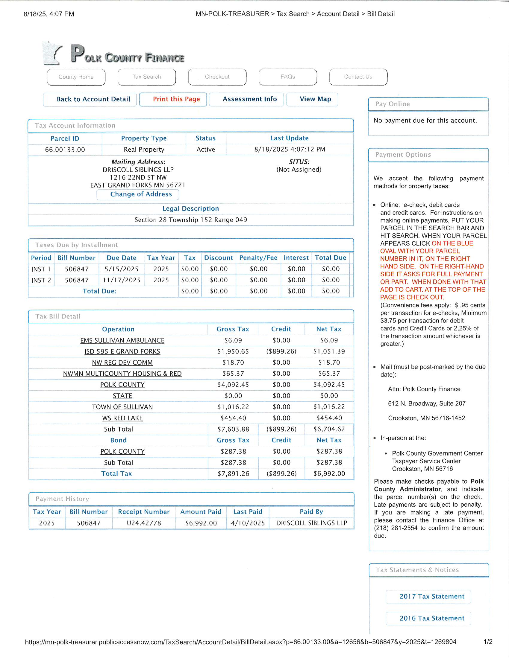 Auction Note: Wow! What a beautiful parcel of cropland and only one mile from East Grand Forks! This highly-productive land features a Soil Productivity Index of 89.4 to include Bearden silt loams, Bearden-Colvin silty clay loams and Glyndon loams in Sullivan Township. The topography is nearly level with slight rolling on the west perimeter. The land is drained, currently seeded to edible beans and wheat and has great access off Highway 19 on the south side. It is located 4 miles from American Crystal Sugar Companys East Grand Forks factory. The current cash rent contract expires after the crop is off this fall. Make sure you attend the live auction at the Alerus Center! Online bidding will start October 17th and continue through the live auction with live webcast on October 23rd!