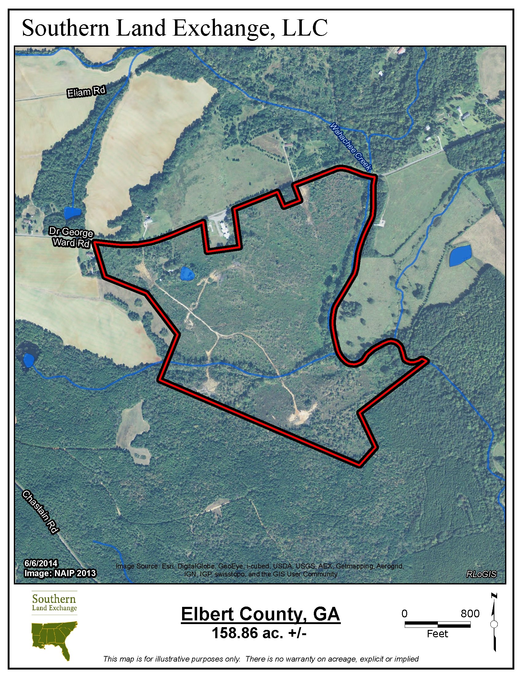 The Wahachee Creek tract has all the features required to make an excellent hunting/recreational tract. The tract fronts on Dr George Ward Rd (paved) in southern Elbert County in the Fortsonia Community. The eastern boundary ( +/- 3,500 feet) of the property is Wahachee Creek, there is also a creek with hardwoods that passes through the tract. There is a 1,600 square foot home on the property that is being sold as is. The home will make a good hunting camp headquarters; the old barns can store a tractor, ATVs and hunting equipment.