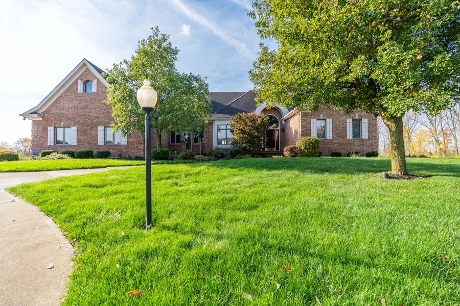 This property is a must see! Located in a quiet neighborhood, in a cul-de-sac, with a pond view and a golf cart drive to the Piqua Country Club. Sit on the elevated screened in porch or fabulous patio overlooking a pond with fountains and the background view of a pasture and horses. This beautiful home features a 3 car garage, gas fireplaces recently updated great room with an a wall of windows overlooking the pond and incredible built ins with a huge ''secret'' storage closet. The office has a separate entrance should anyone chose to work from home. Walk down to the dream basement featuring a bar, separate large mirrored gym, temperature controlled wine room and a TV and entertainment room that opens onto the covered patio. This home truly has all the features anyone could want along with the privacy and an exceptional view.
