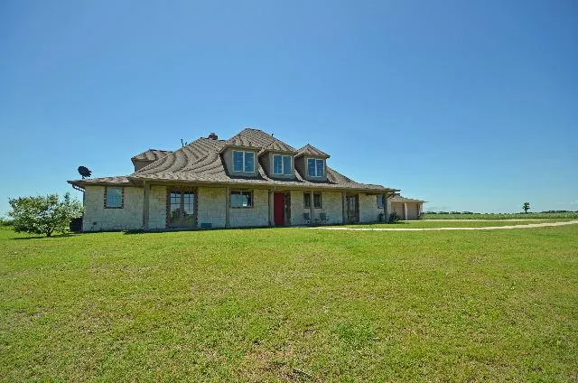 Country living with convenient access to all of McKinneys fine dining and shopping can be yours in this fabulous 5-bedroom custom home on 18 acres with a pond and creek. This home offers unique living spaces inside and out, with a long sitting porch to enjoy the panoramic views, and a covered patio in the backyard with a fireplace and swimming pool with raised spa. Inside, youll find tile flooring, Silestone counters, crown moldings, art niches, skylights and custom paints, as well as 3 more fireplaces and incredible views. The Dining Room features a coffered ceiling, brick corner fireplace, built-in banquet and a wet bar that is shared by the Living Room around the corner. The Living Room is breath-taking with a vaulted wood beam ceiling that compliments the stacked wall-to-wall windows making the most of the views, a stone fireplace with gas logs, and built-in entertainment center, as well as open access to the Kitchens eating bar. In the Kitchen, you will find abundant antique finished custom cabinets, stainless steel appliances including double ovens, a walk-in pantry and Silestone counters, with easy access to the Utility Room and 3-car Garage. The Master Suite has a 3rd fireplace and built-ins, with a sitting area and a glass door to the wood deck and pool/spa, as well as a private bathroom with TWO big walk-in closets, separate vanities, and a jetted tub. Two additional Bedrooms are downstairs sharing a full hall bathroom, and upstairs youll love the 2 very spacious Bedrooms with sitting areas and private Bathrooms. This home has tons of storage including walk-in attic access and a Garage storage closet. And, if thats not enough, a breezeway from the Kitchen leads to a very private Guest Suite attached to the Garage with a mini-Kitchen and full Bathroom, as well as more beautiful views of the property and pool.