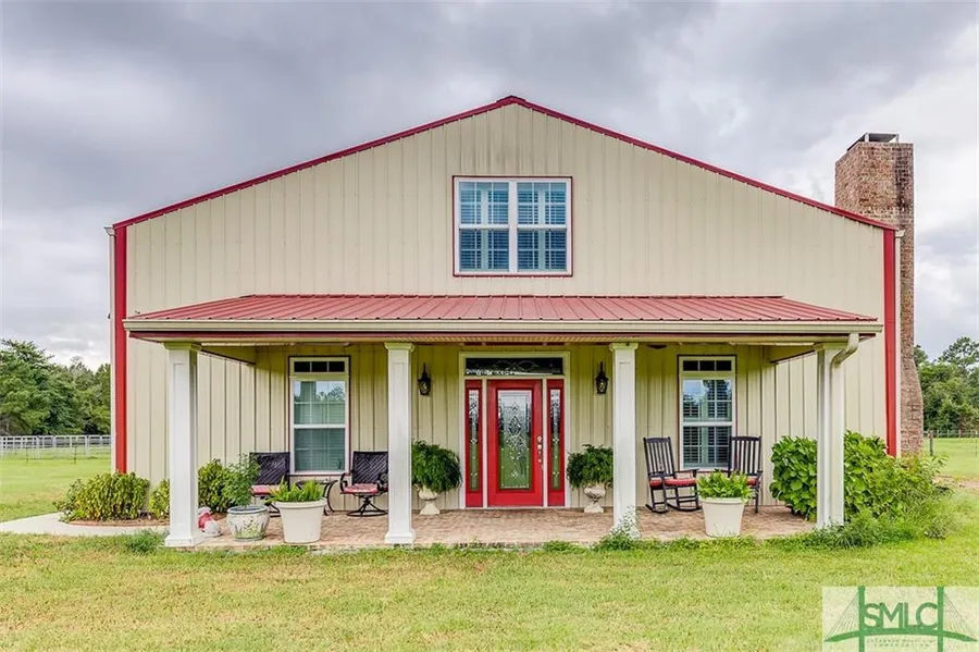 Unique, unique, unique! This home is a horse lover's dream! This 1 and 1/2 story metal home features 4 bedrooms and 2 and 1/2 baths with upgrades galore! The kitchen features granite countertops, a bar area, and stainless steel appliances including a double wall oven. Custom cabinetry and built-ins that make efficient use of every space in the house, hardwood floors throughout, and plantation shutters on every window! Laundry is on the first floor. Attached to the house is a large utility area with a roll up door AND a 4 stall stable with tack room. This is one of the many features of this property that makes it truly unique. The stable opens up to an expansive 5+ acre fenced in pasture. Total acreage included with this property is just over 16 acres. It is approximately 30 minutes to Statesboro and 15 minutes to Springfield. Just far enough out to get you away from that hustle and bustl...