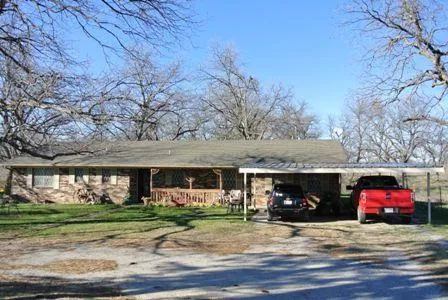 Impressive and well kept, 3 bedroom, 1 3/4 bath brick home on paved road northwest of Stratford. Beautiful treed setting. Home has nice sized living room, den and bedrooms. Kitchen has built-in applicances and includes refrigerator and Butcher Block. Ceramic tile in kitchen, entry, hall, bathrooms & closets. Park Like Setting with pecan trees.