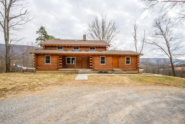 Unique custom built Amish log house with lots of room.Built without electricity BUT has just been wired & hooking up to AEP. Beautiful mountain views, unique wood work, 16+ acres, large barn and plenty of room for garden and livestock. Convenient to large network of horse trails through Nat'l Forest. Family lived in basement while building. Although concrete floors & walls, can easily be finished and already has kitchen, bedroom, full bathroom, laundry room & plenty of room for more bedrooms and living area. Basement heated with system of water lines installed in concrete floor. Upper 2 levels heated with wood cook stove that does not convey. A more private driveway could be installed. Convenient location not too far from Pearisburg, Dublin, Bland, Christiansburg. Close to Walkers Creek.