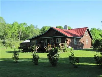 Quiet Country Road, Custom Built Log Cabin on 16.76 Acres, with several Outbuildings, mature landscaping and beautiful views. House features 3 Bedrooms, One Bath, Open Floor Plan, with Vaulted Ceilings in the Kitchen/Dining/Livingroom area. Walk out, to deck from the diningroom overlooking perennial garden and stable. Heated enclosed porch on the back of the house currently used as an office/hobby room overlooking the backyard. Deep dry basement with workshop area with lots of storage, and excellent overhead lighting. 30' by 50' Detached 4 Car Garage with workshop, concrete floor heat, overhead lighting and lots of storage area. 38' by 40' Barn with attached run in shed. Box stalls for horses and a kennel for the dogs. Machine shed. Perfect for someone with a home based business or having multiple hobbies which require additional space. Plenty of land and good utility buildings fo...