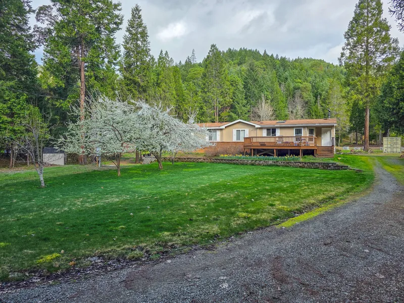 This picturesque property offers a serene escape with ample space for various activities and the tranquility of a stunning wooded area. Nestled close to town yet shielded from its hustle and bustle, this 4-bedroom, 2-bath home boasts an inviting open floor plan. The landscape is dotted with fruit trees, and a seasonal creek adds to the natural charm of this idyllic setting. Come check it out!
