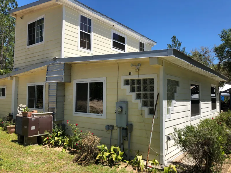 The home has 1,161 heated sq feet, with and additional pour concrete slab that is plumbed to expand home to 3,500 ft. Home has an full apartment on the second story. Kitchen has beautiful teak bar with modern appliances and granite counter tops and back splash. Ground floor is all hand laid imported tile and custom wood interior. Everything is to code and permitted, floor plans available to continue building, home is built very well with all hard wood framing. Property is 5 minutes form downtown Melrose for shopping, dining, entertainment, as well as access to 6000 acre Lake Santa Fe great for Wakeboarding, Wakesurfing, Skiing, Fishing, sailing, Etc...