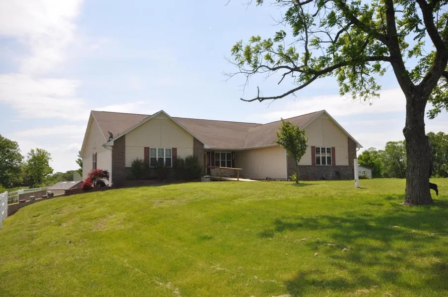 Horse Farm with 3656 sq. ft. home & shop! 16+ beautiful grass filled acres, 3 paddocks, 3 stall horse barn, 40 x 64 shop with 12' overhang, Ranch home with 3 bedroom, 2 1/2 bath plus full apartment below, open & bright, gas fireplace, great kitchen, formal dining room, great hard wood floors. A must see property & home only 22 minutes to Branson!