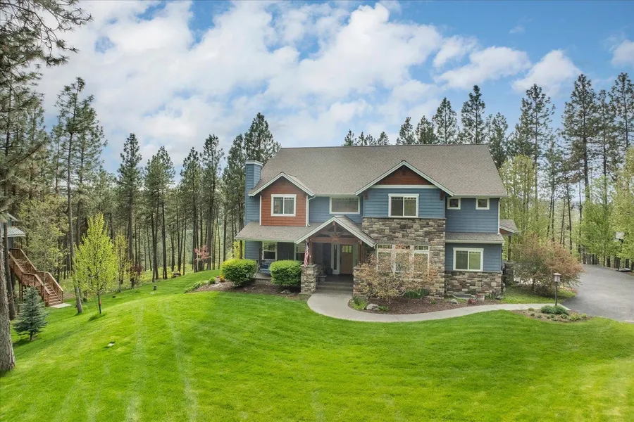 All the benefits of living in a beautiful ponderosa forest meld in this northwest home while being only 10 minutes from downtown Spokane & the airport. This quiet gated community has the feel of living in the country while being only minutes from shopping. It's nestled on 17 low-maintenance acres, boasts a fenced garden w raised beds, fruit & nut trees, berries. This extremely well-maintained home features a versatile floor plan: 5 bedrooms upstairs (1 that can be used as an office or playroom,1 w roughed in plumbing for an add'l ensuite), 4 baths, walk-in closets throughout & loads of storage. A huge sunset deck is the ideal spot for summer entertaining w beautiful views. The daylight walkout basement has a huge family room w kitchenette & large bonus room. Also featured is a fantastic two-story treehouse: finished w tongue & groove cedar walls, electric, heat & two balconies. Neighborh...
