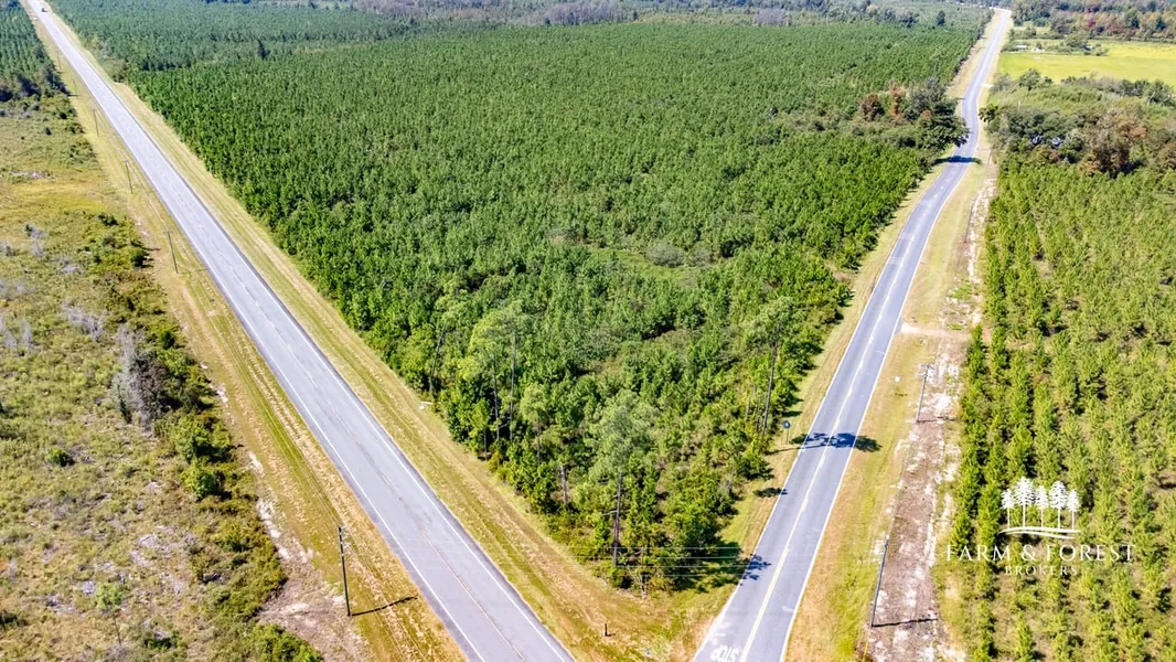 The property is currently planted in young pine trees that create an attractive buffer from the road. It is surrounded by farms and timberland properties in the area, with productive soils. The property lies under an hour from the Gulf Coast for an easy ride down with your boat for a day on the water, the beach, or to grab some world-class seafood.