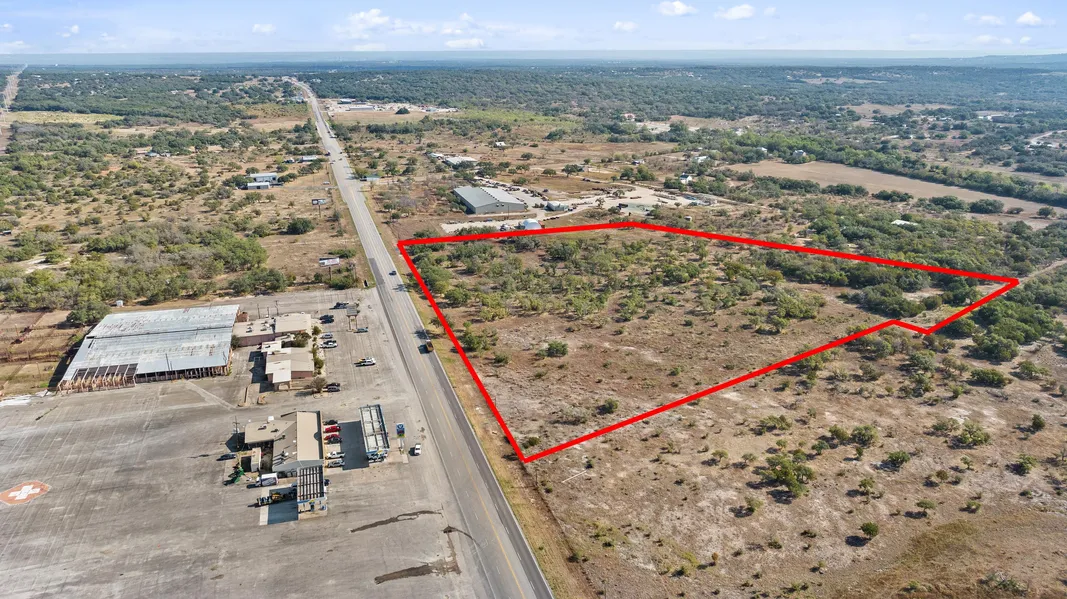 Research Parcel InformationHeading North through Round Mountain Texas, the property on the right across from convenient store.