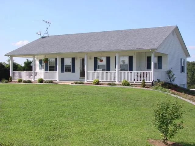 A2678 – 9782 Russell Springs, Rd. Russell Springs, KY (Adair Co) – This nice 2-owner vinyl sided house with semi-finished basement is situated on 16 acres m/l with 2 spring branches and practically new 28 ft. x 36 ft. metal equipment shed and barn. House features 2 or 3 bedrooms, 3 bathrooms (one unfinished in basement), living room with vaulted ceiling, spacious kitchen/dining combination with oak cabinets, floating tile flooring, and number one quality laminate Bruce Hardwood in living room and dining area. Other amenities include large pantry, kitchen appliances included, central heat and air, county water, and most of property is fenced with 5 strand barbed wire and plank fencing around back of house. The basement offers additional living quarters with separate outside entrance and could be used as an apartment. Basement has foyer entrance, large den with gas fireplace, unfinished kitchenette area that has electric and plumbing, office area, utility area and drive in garage. House sits back from main roadway and offers beautiful wrap around porches to enjoy the country atmosphere. Centrally located between Columbia and Russell Springs.