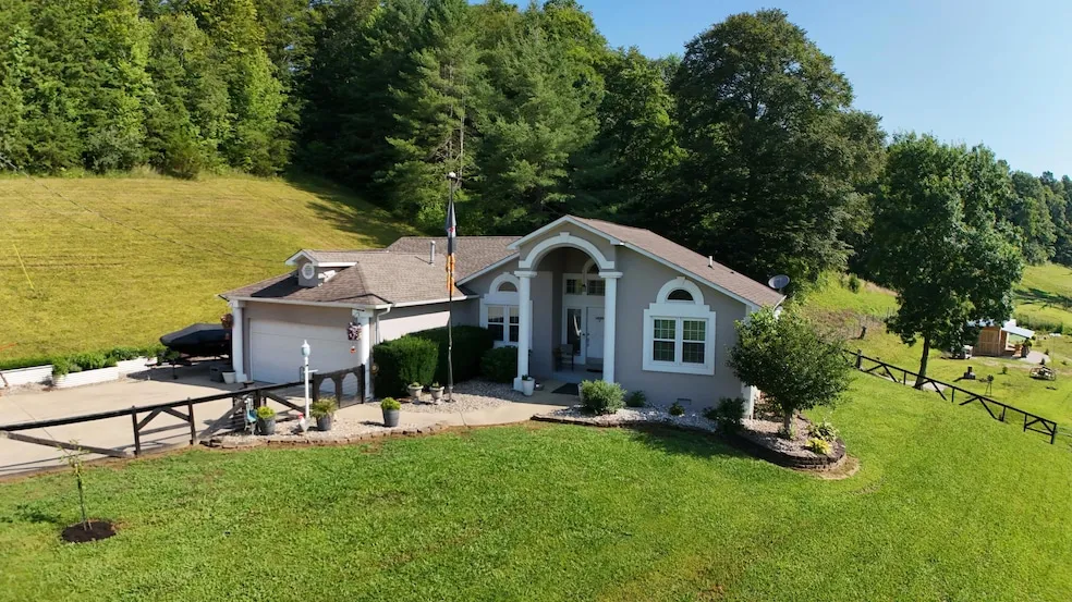 RARE FIND! An updated 3 bedroom 2 bath nestled on 16 +/- versatile and unrestricted acres. The home has had several updates. The land is the perfect blend of forest and pasture. It is enough acreage to provide privacy, picturesque views, hunting, fishing, and farming. The living room has vaulted ceilings, a gas fireplace and some new cordless blinds. The kitchen cabinets have been painted, new butcher block countertops, new backsplash, pull out shelves in lower cabinets, stainless appliances about two years old, which include Z-line gas stove, low profile microwave, dishwasher, fridge/freezer with ice maker, new flooring and new cordless blinds. The front load washer and dryer are conveying. The primary bedroom is to the left of the living room. The other 2 bedrooms and bath are to the right of the living room. Outside, the heated inground pool has new filter and pump. The inte...