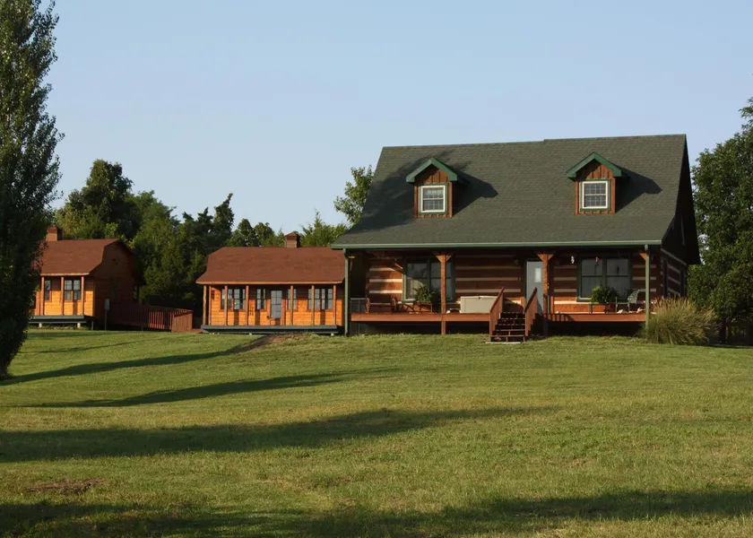 CUSTOM BUILT SQUARE HEMLOCK LOG HOME: Sits on 16.383 acres w/2 -16x24 pre-fab bldgs.,14x34 bldg. & open implement shed.