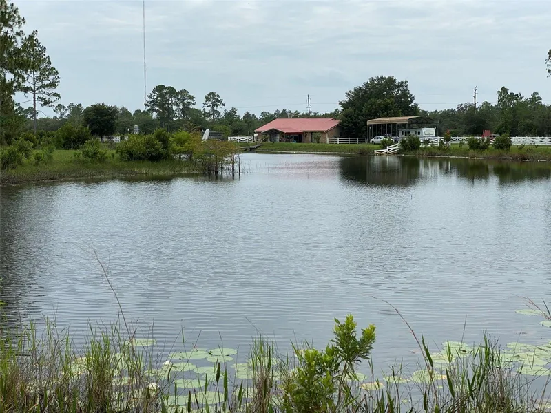 This 160 acre Ranch helps pay for itself with a lucrative Airsoft Business established! There are many amenities here to appreciate. Notably the farm has been outfitted by an expert sportsman and cattleman. Located in the Ocala National Forest, 1/2 mile by 1/2 mile square, Fully fenced, cross-fenced and de-stumped. A beautiful brick residence overlooks the water. The custom layout and forming of the land makes it ideal for traversing, if you know your way around! The perfect blend of pasture, wooded areas, trails, roads and 14 ponds. The water is stocked with several species of fish including large mouth Bass, Catfish, Georgia giant Bluegill and amur Carp. The cattle also thrive here, dining on Argentine Bahia grass. The facilities on site are many and include a commercial style metal building, covered loading dock, two 24x40 Pole barns with 8 inch slabs, 8 standard storage sheds, a stor...