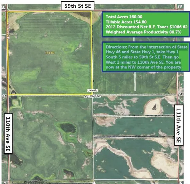 Research Parcel InformationDirections; From the intersection of State Hwy 46 and State Hwy 1, take Hwy 1 South 5 miles to 59th St S.E. Then go West 2 miles to 110th Ave SE. You are