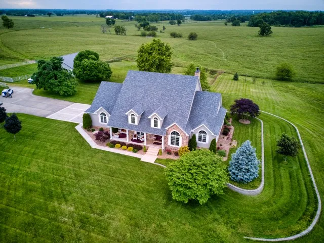 CUSTOM LUXURY AMENITIES INSIDE & OUT! This 160 acre farm in the heart of the Ozarks offers the perfect combination of luxury living and country living. As you enter through the gated entrance the pristine condition of the home and property are apparent. Extensive landscaping and lighting enhances the entrance and surrounds the home. The custom home has been meticulously cared for. The inviting covered front porch leads to an impressive foyer with a curved staircase to the second floor. A dramatic great room features an 18 foot stone fireplace and is filled with natural light from a two story wall of windows. The kitchen is the heart of the home with a suite of high-end stainless steel Viking appliances, custom cherry cabinets, pantry and adjacant breakfast nook and formal dining room. The master suite will be the envy of all. Complete with a sitting area in the master bedroom, walk-in closet and a tastefully designed en suite bathroom, this master suite is the example of elegance and comfort. Upstairs boasts 3 bedroom, 2 baths and game room complete with pool table and back stairway leading down to the kitchen and laundry. Seamlessly integrating the indoor space to the outdoors is a large patio with waterfall , hot tub and covered by a pergola. Along with a 3 car attached garage there is a shop, hay barn, equipment barn, an indoor cattle working facility with squeeze pens, scale, head chute and a sorting barn with separate corral system. Luscious clover, orchard grass, and fescue pastures offer plenty of grazing and hay for your cattle or horses. The property is fenced and cross fenced, has 4 ponds, and water in the corrals. Cattle and hay included with an acceptable offer. Farm equipment package available for additional money. Words do not do this beautiful property justice. You must see it to fully appreciate. Call us to schedule your private tour today!