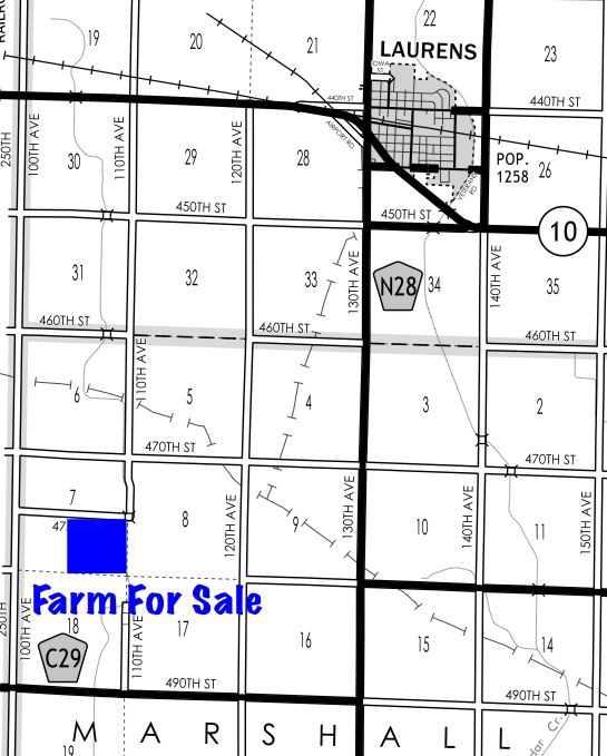 Property Location: Two miles west of Laurens on Highway 10 and 3 1/2 miles south on 110th Avenue.