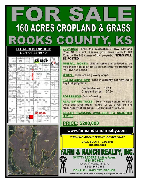 LOCATION: From the intersection of Hwy K18 and Road 10 in Zurich, Kansas, go 6 miles South to DD Road to the NE corner of the property. SIGNS WILL BE POSTED!!